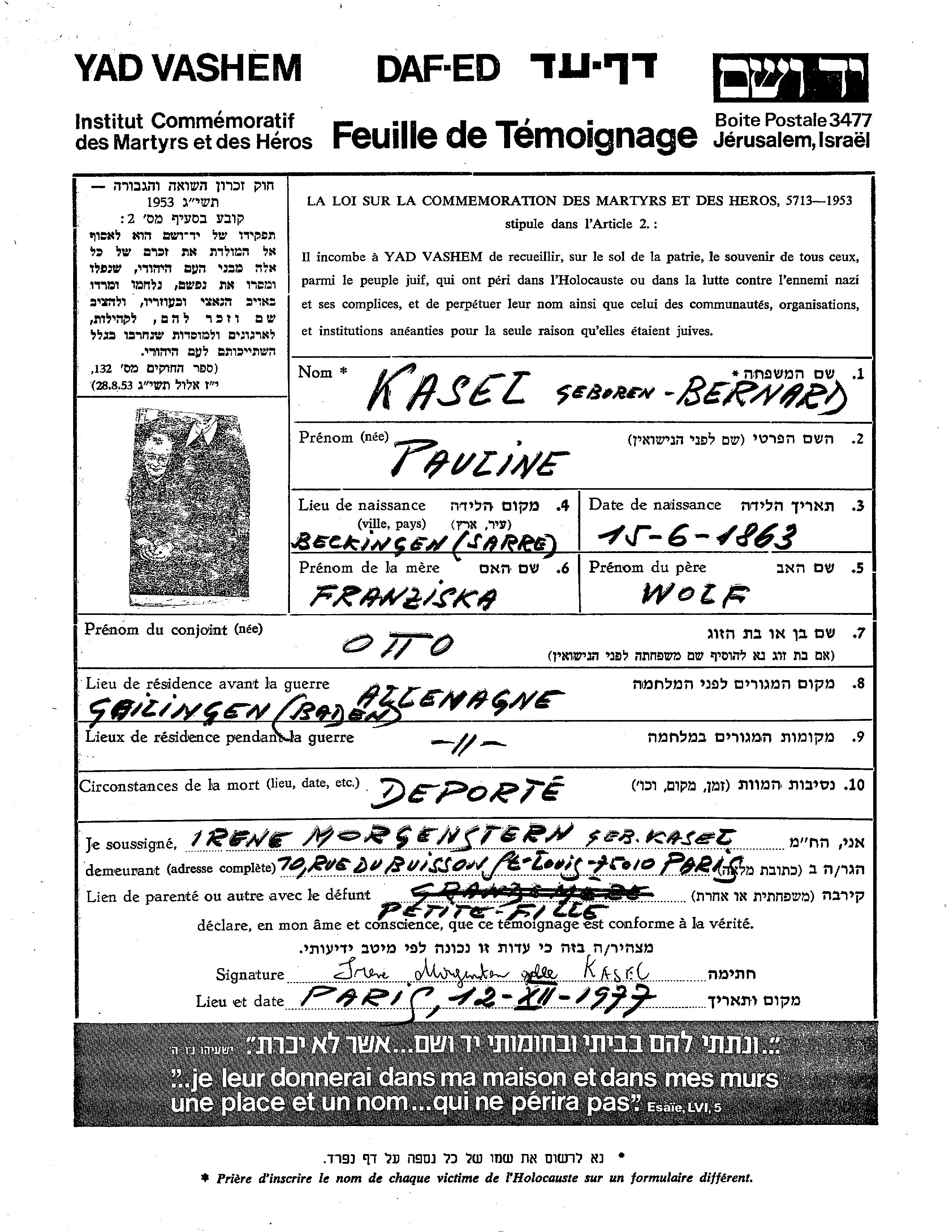 Касель | Паулине | Список преследуемых / пострадавших лиц | ||