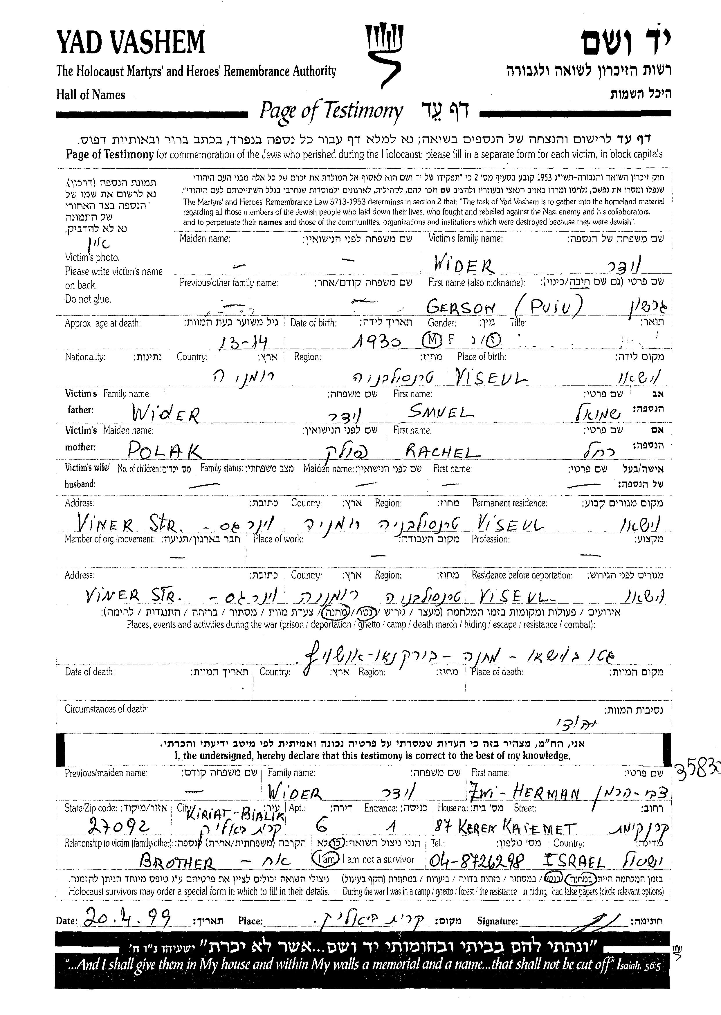 Во время войны/Шоа: