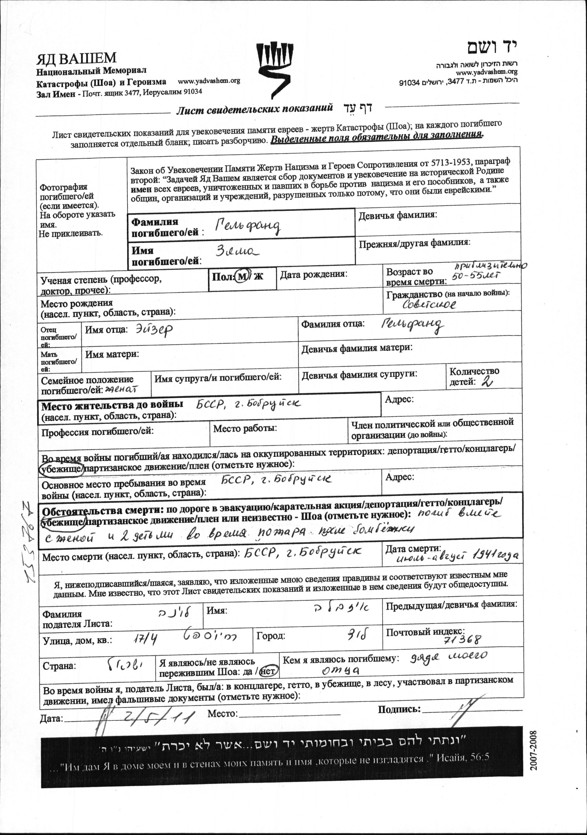Поиск подателя Листа свидетельских показаний. Поиск по любому имени, включая уменьшительное или прозвище