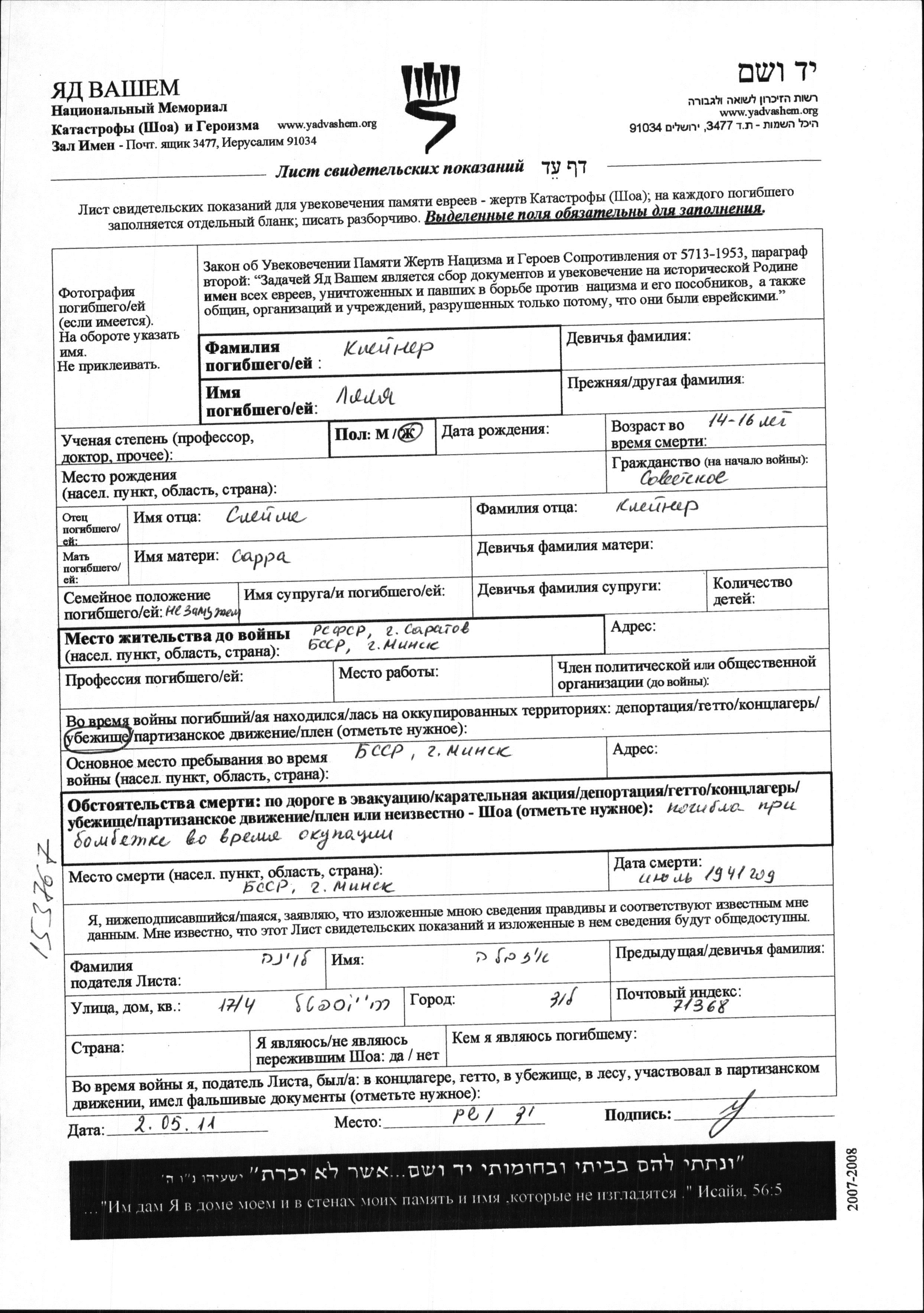 Поиск подателя Листа свидетельских показаний. Поиск по любому имени, включая уменьшительное или прозвище