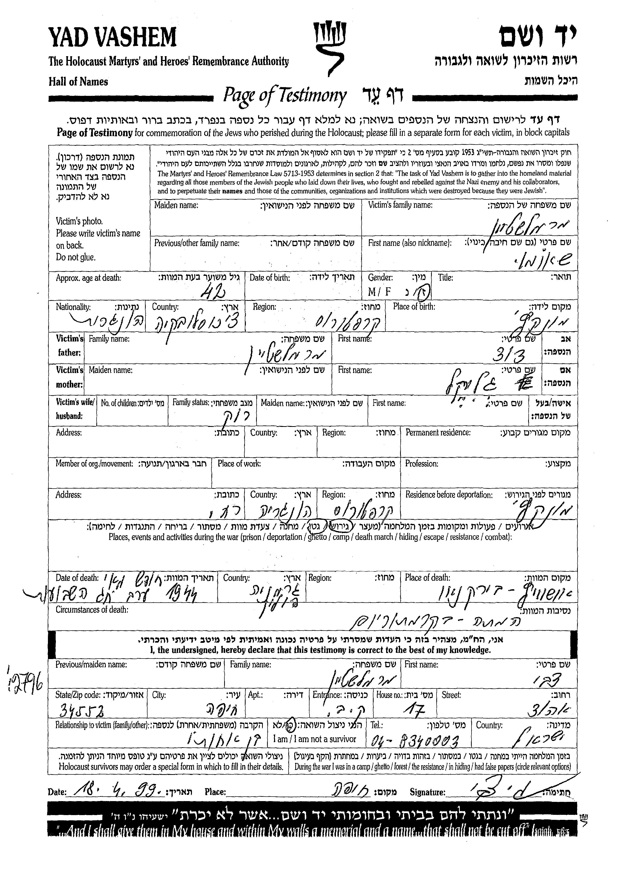 Яд Вашем - Листы свидетельских показаний Мемориального фонда