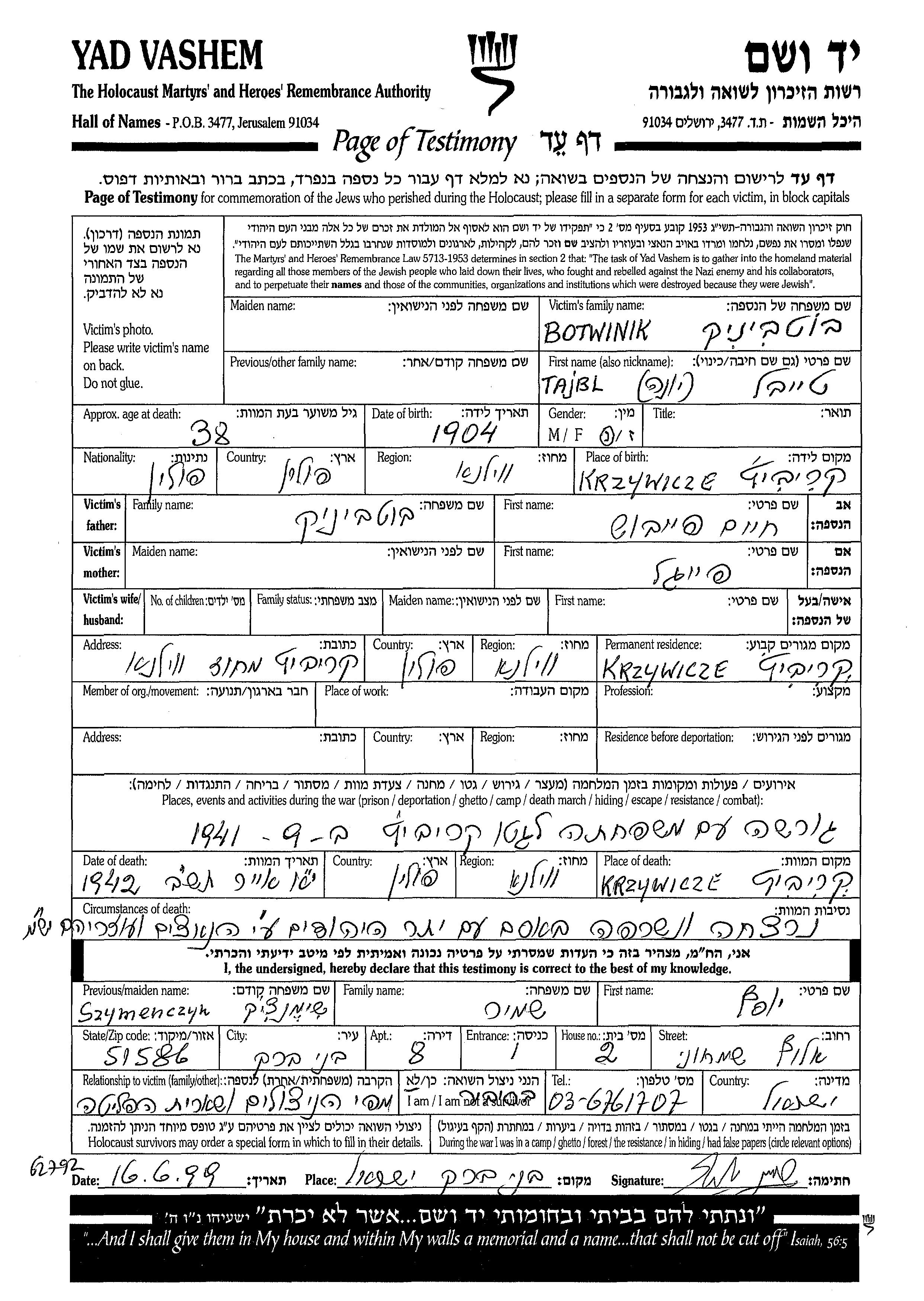 Поиск подателя Листа свидетельских показаний. Поиск по любому имени, включая уменьшительное или прозвище