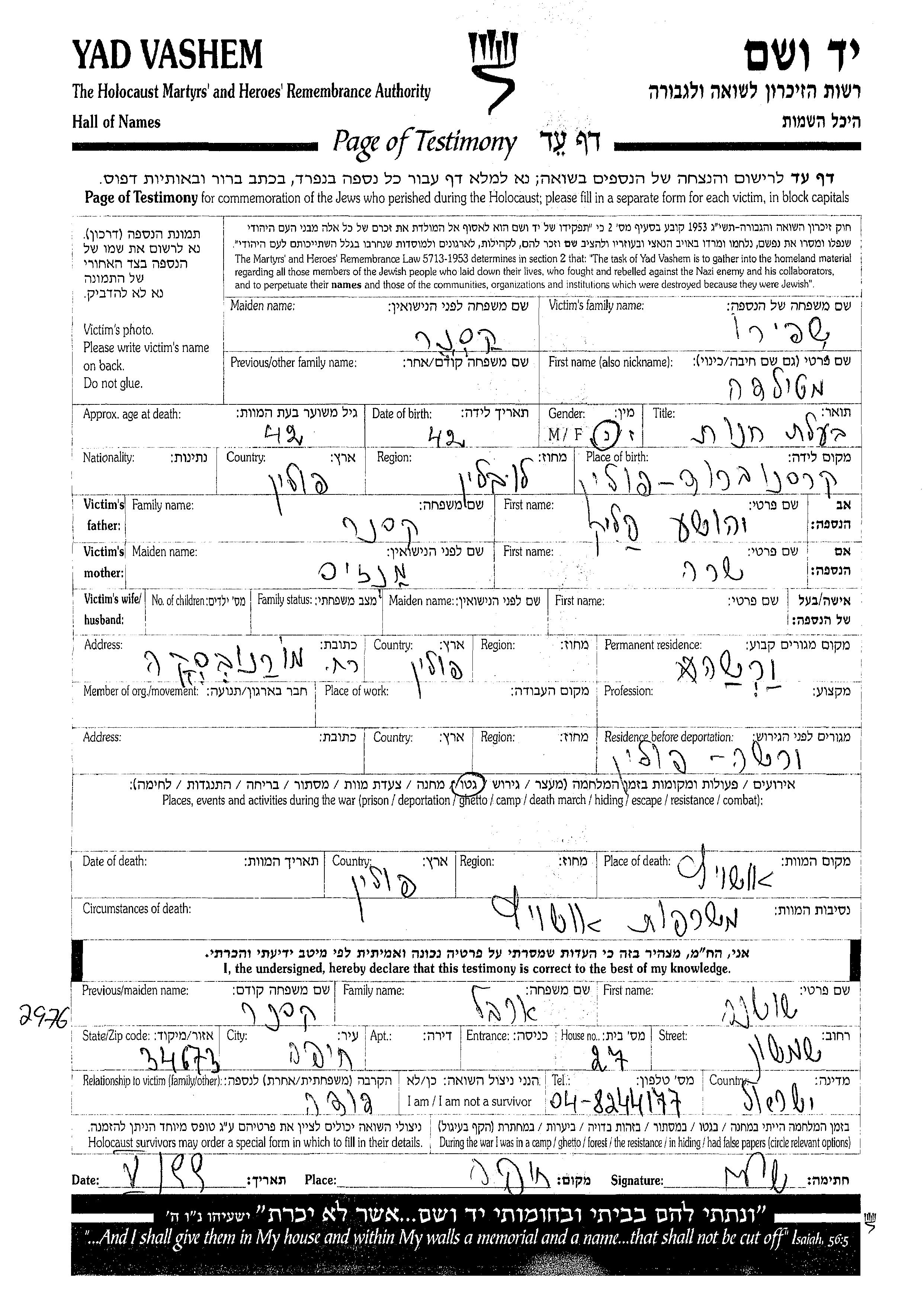 Яд Вашем - Листы свидетельских показаний Мемориального фонда