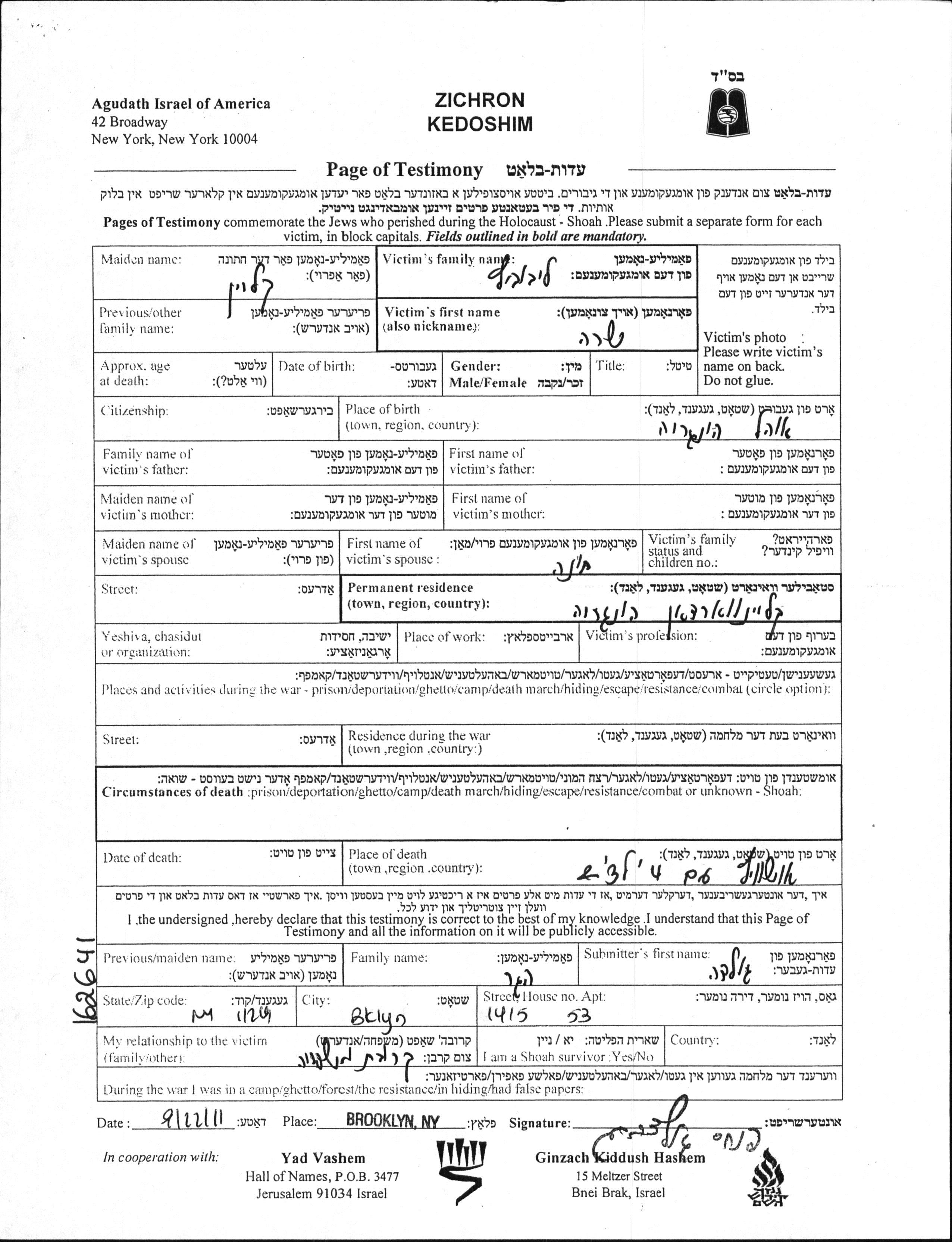Яд Вашем - Листы свидетельских показаний Мемориального фонда