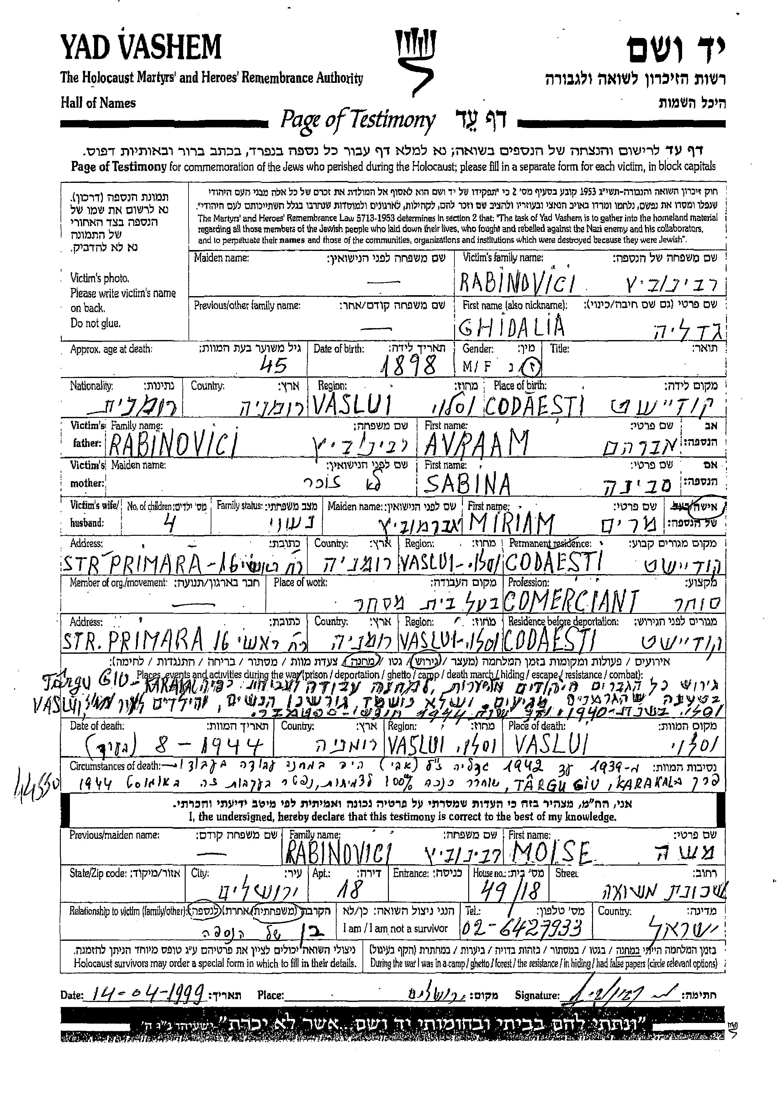 Во время Шоа евреев уничтожали разными способами: газовые камеры, расстрелы, их заживо хоронили или сжигали, непосильным принудительным трудом, голодом, эпидемиями, отсутствием минимальных гигиенических условий и медицинского обслуживания, и т.д. Некоторые евреи добровольно расстались со своей жизнью, чтобы избежать ареста и дальнейших преследований или чтобы покончить с безысходностью и бесконечными страданиями. Десятки тысяч еврейских солдат, служивших в Советской армии и попавших в плен, , были отобраны как евреи и убиты. Многие были зарегистрированы как «пропавшие без вести».