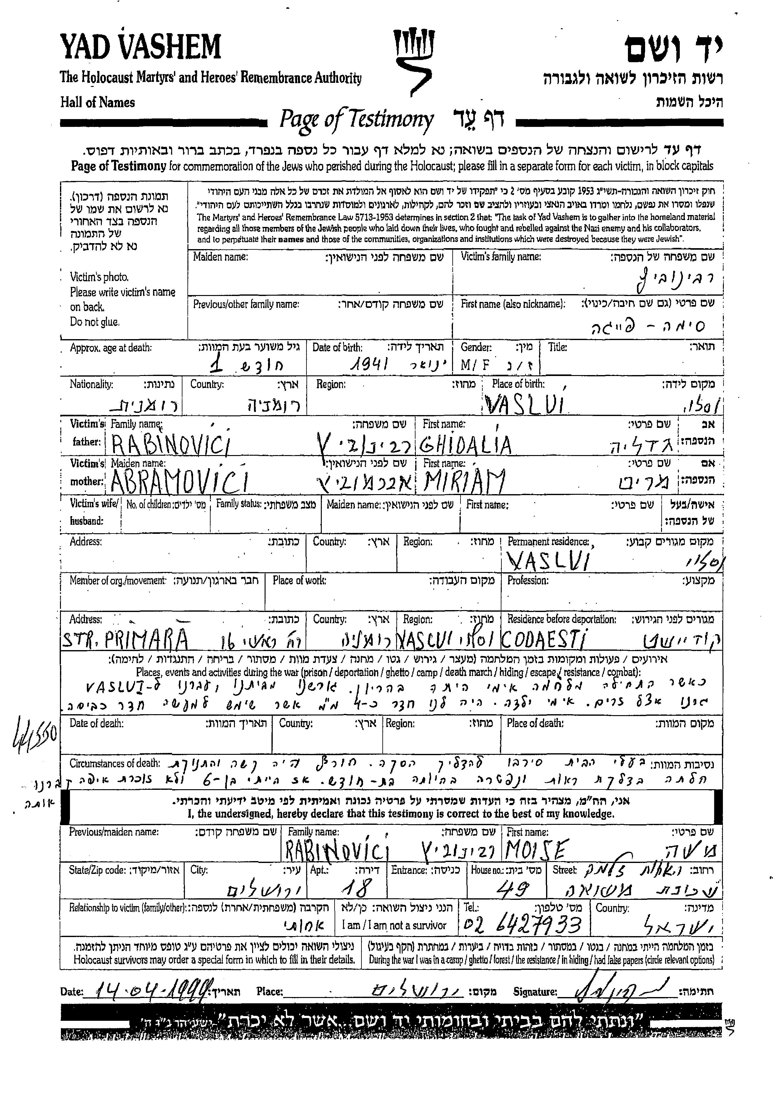 Во время Шоа евреев уничтожали разными способами: газовые камеры, расстрелы, их заживо хоронили или сжигали, непосильным принудительным трудом, голодом, эпидемиями, отсутствием минимальных гигиенических условий и медицинского обслуживания, и т.д. Некоторые евреи добровольно расстались со своей жизнью, чтобы избежать ареста и дальнейших преследований или чтобы покончить с безысходностью и бесконечными страданиями. Десятки тысяч еврейских солдат, служивших в Советской армии и попавших в плен, , были отобраны как евреи и убиты. Многие были зарегистрированы как «пропавшие без вести».