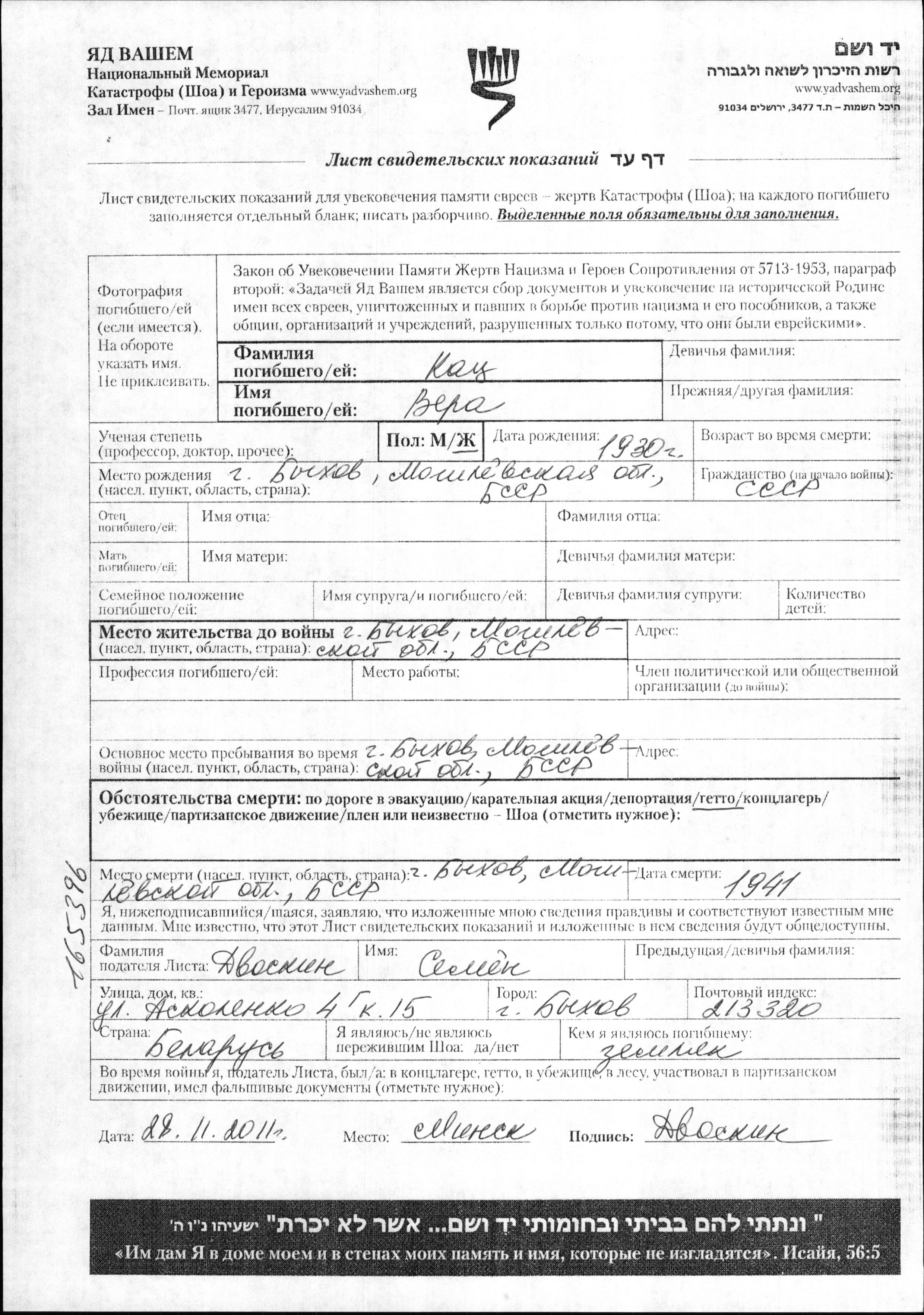 Поиск подателя Листа свидетельских показаний. Поиск по любому имени, включая уменьшительное или прозвище