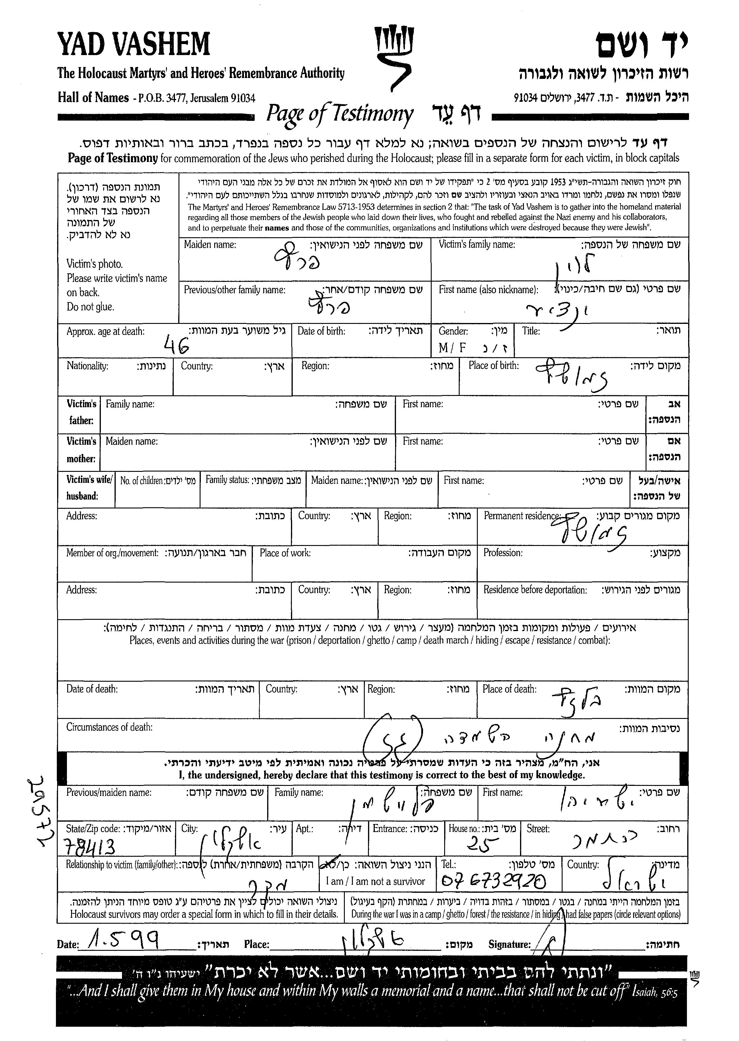 Яд Вашем - Листы свидетельских показаний Мемориального фонда