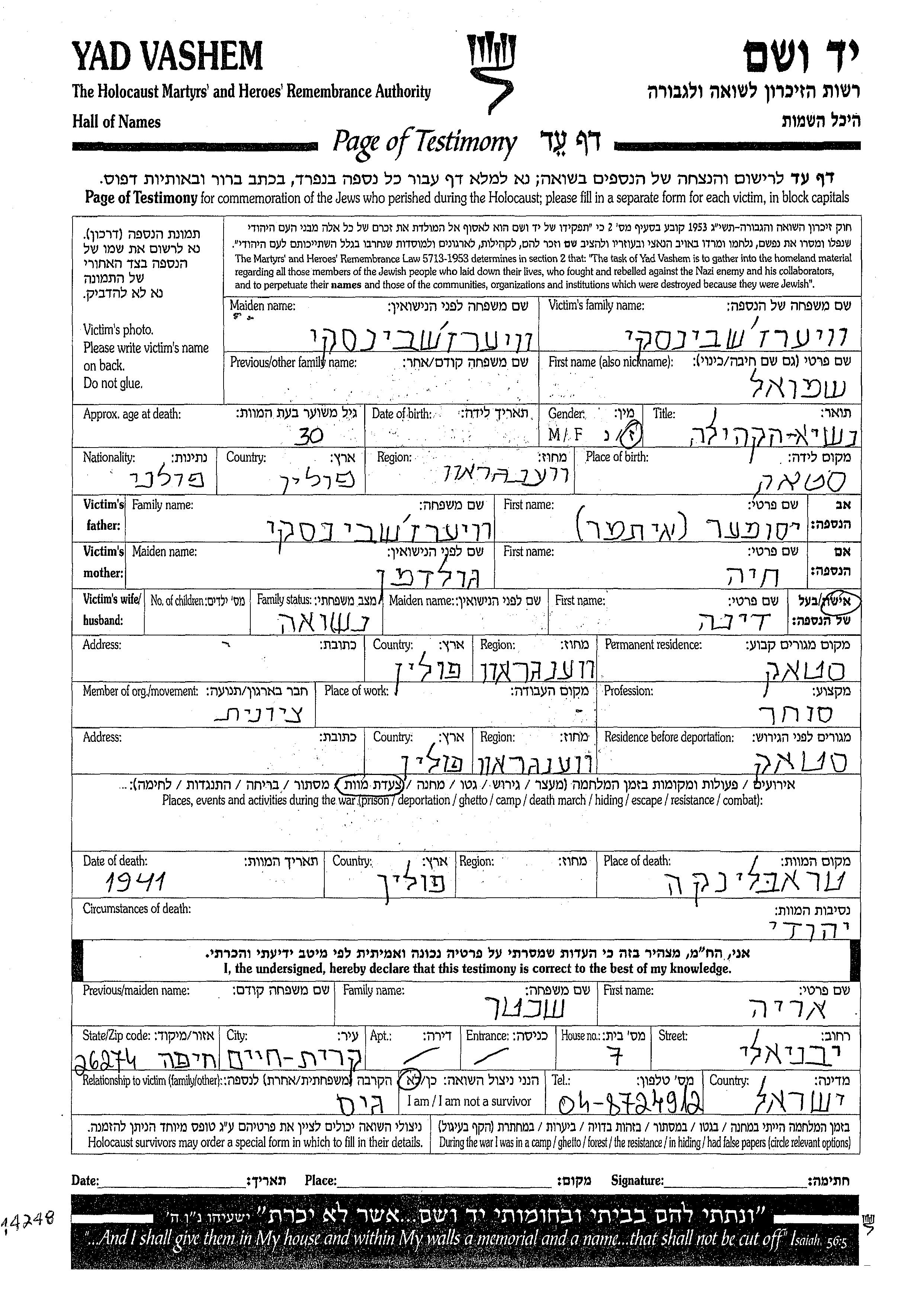 Яд Вашем - Листы свидетельских показаний Мемориального фонда