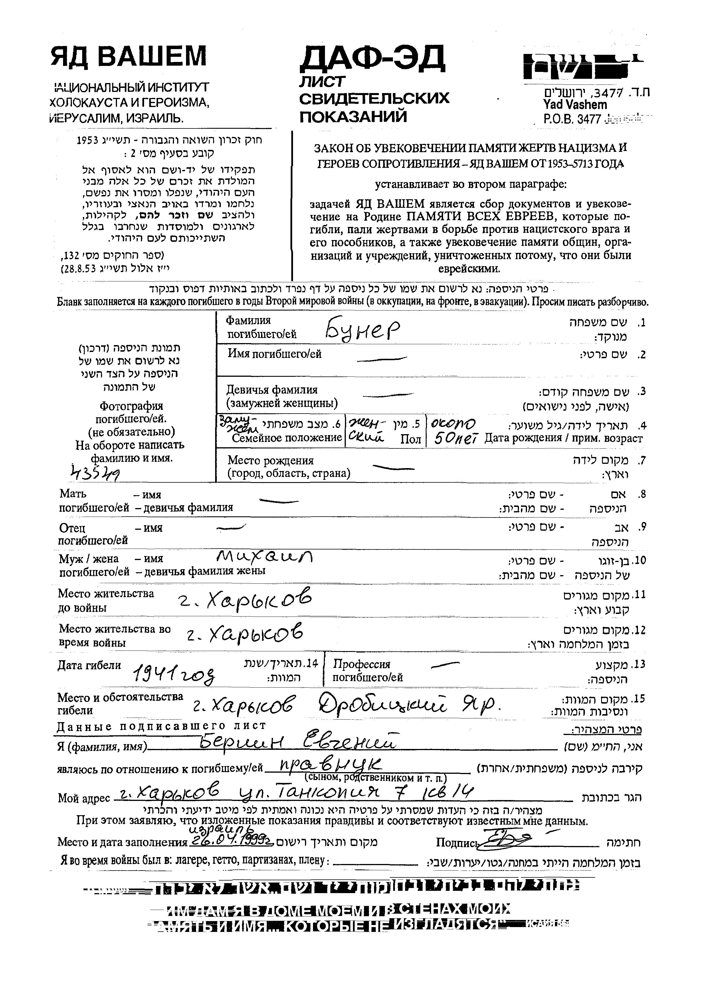Поиск подателя Листа свидетельских показаний. Поиск по любому имени, включая уменьшительное или прозвище