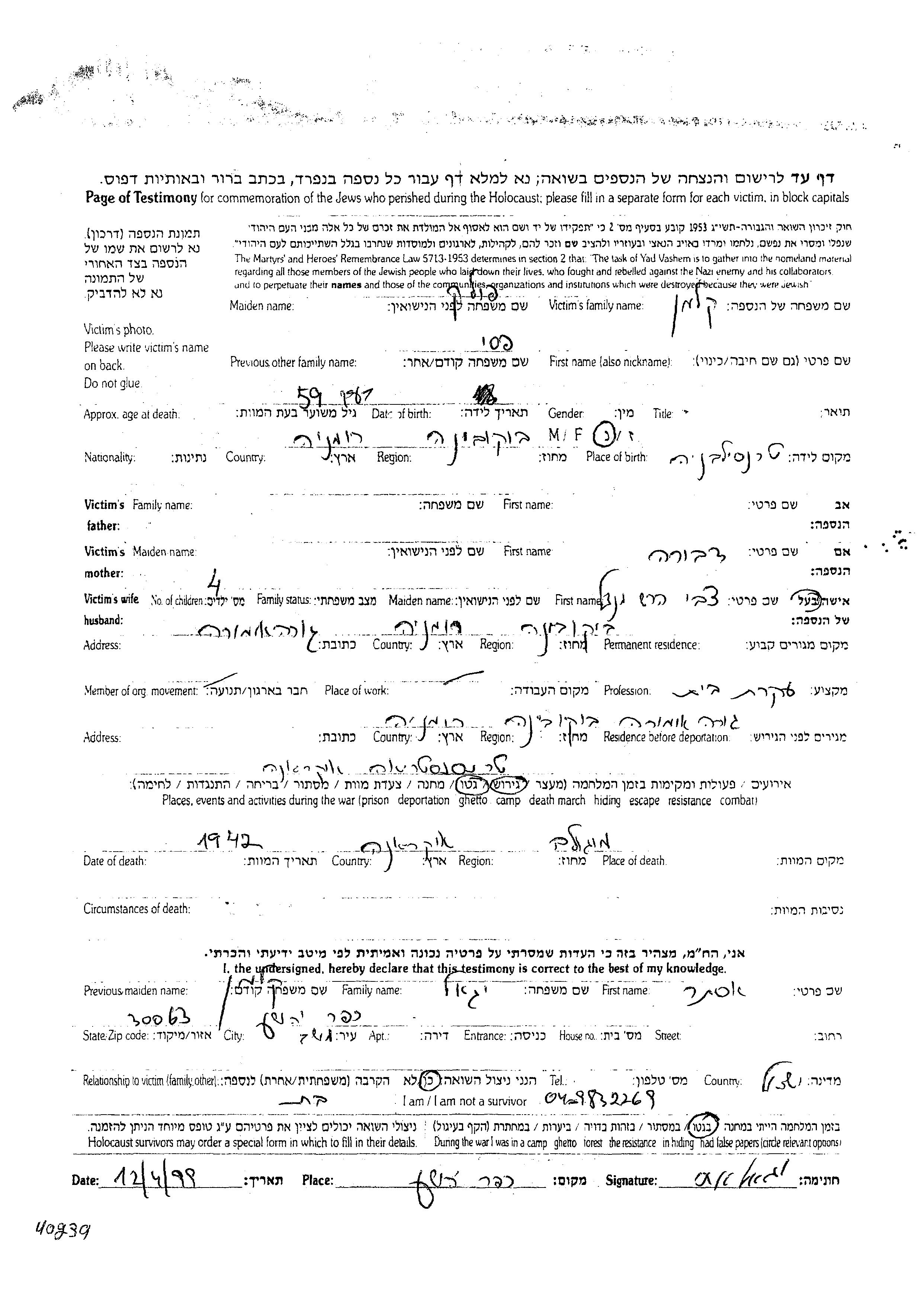 Яд Вашем - Листы свидетельских показаний Мемориального фонда