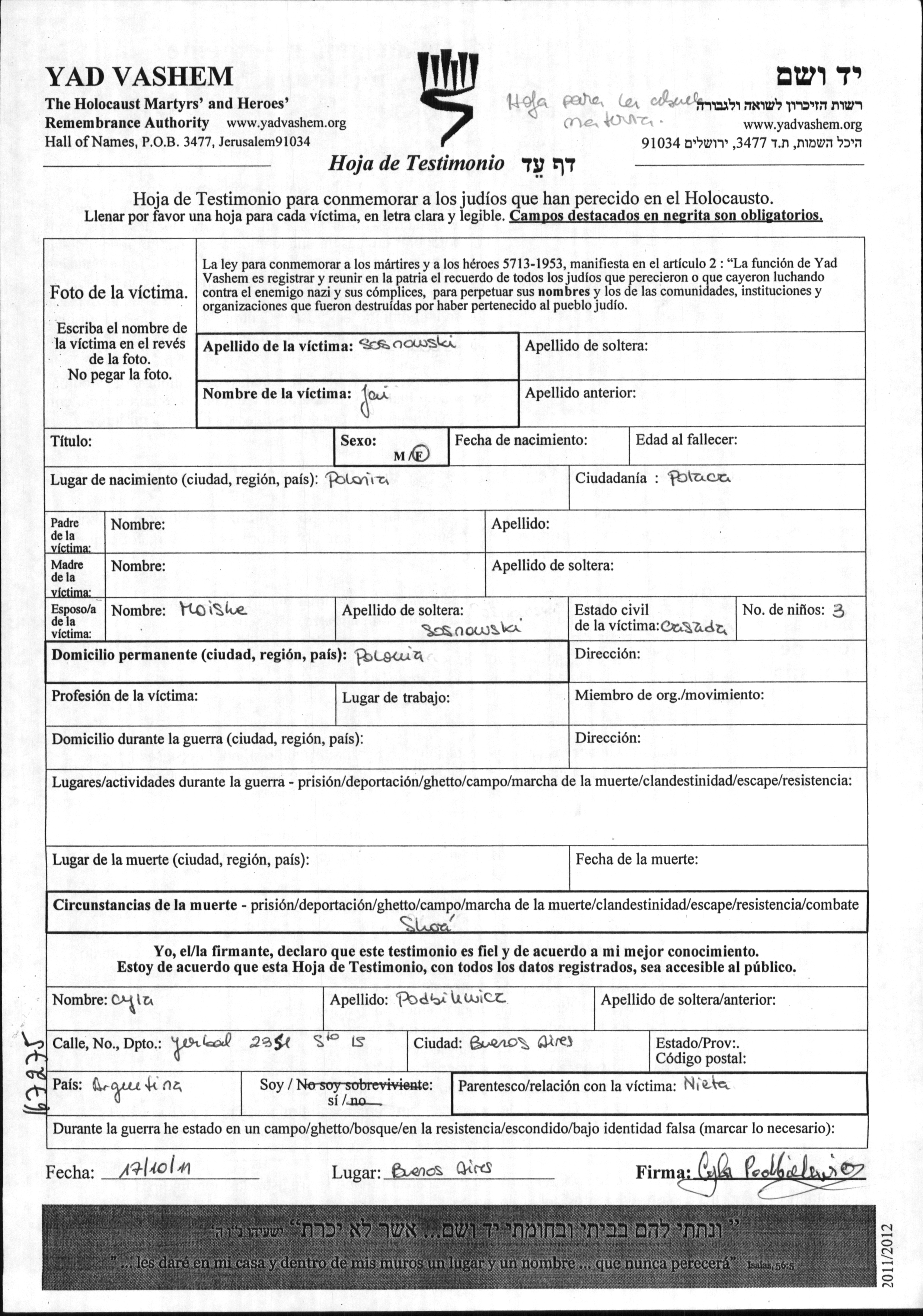 Яд Вашем - Листы свидетельских показаний Мемориального фонда
