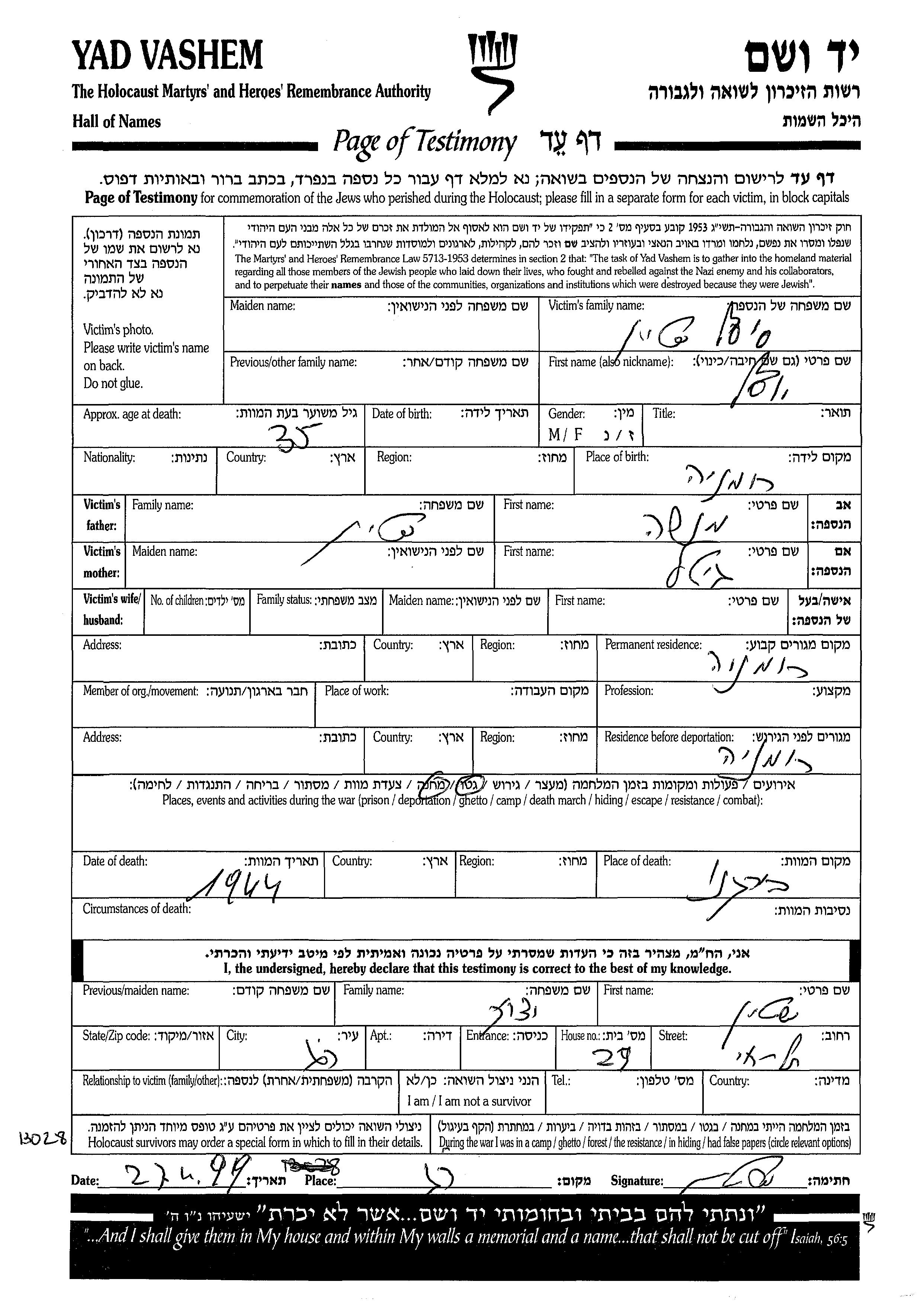 Яд Вашем - Листы свидетельских показаний Мемориального фонда