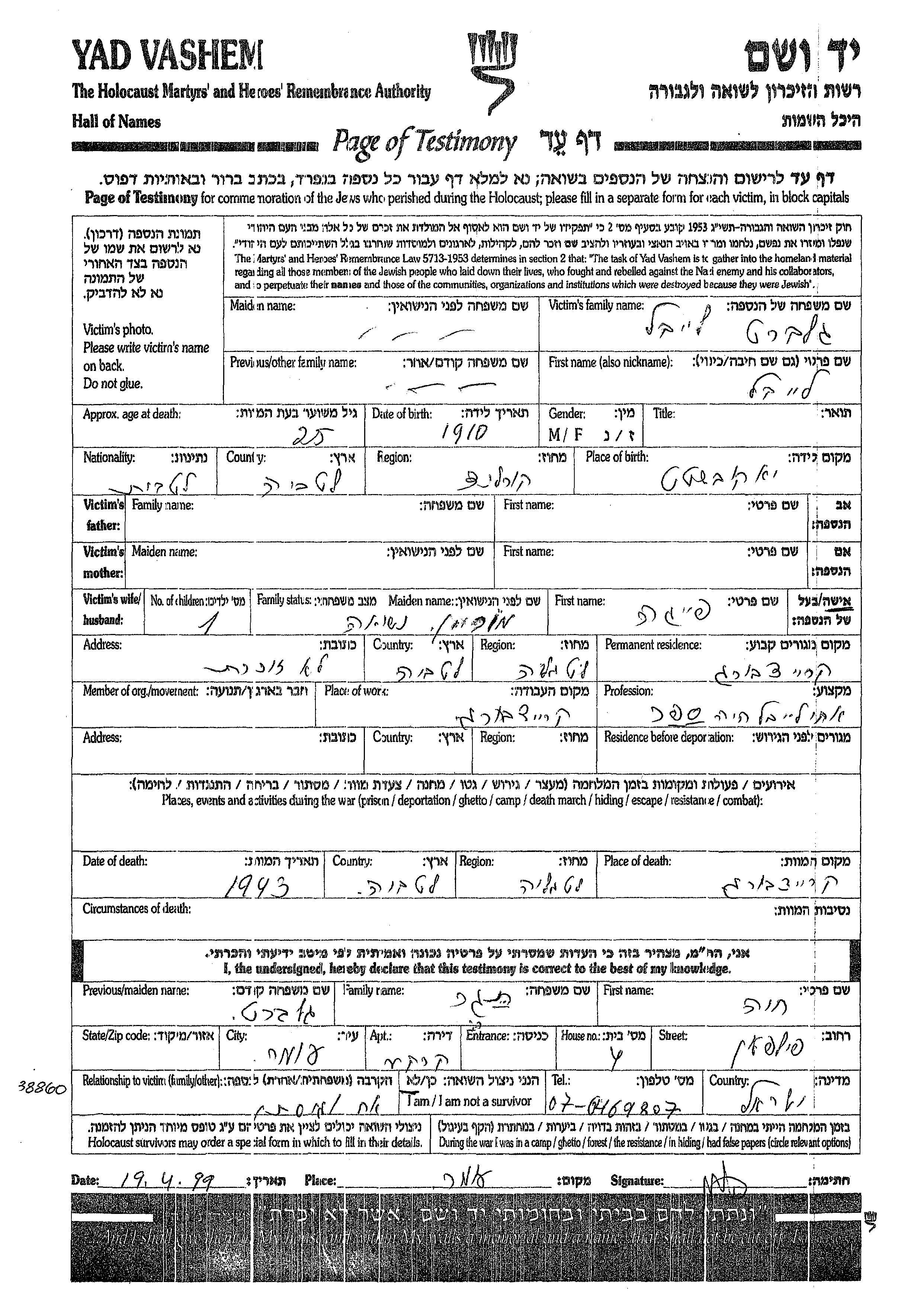 Яд Вашем - Листы свидетельских показаний Мемориального фонда