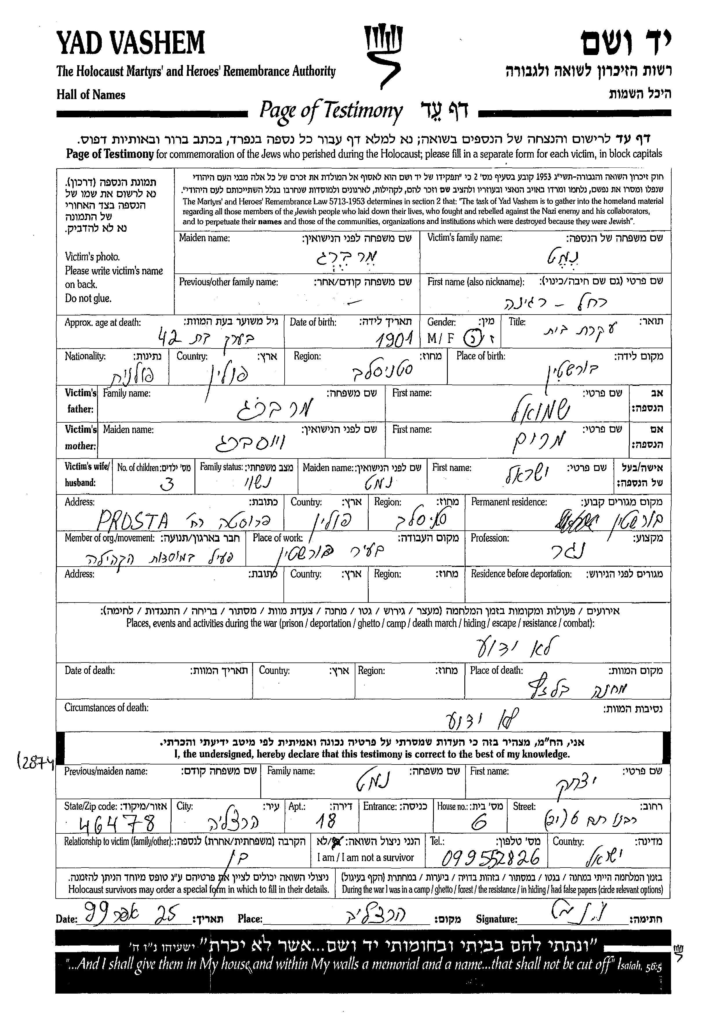 Яд Вашем - Листы свидетельских показаний Мемориального фонда
