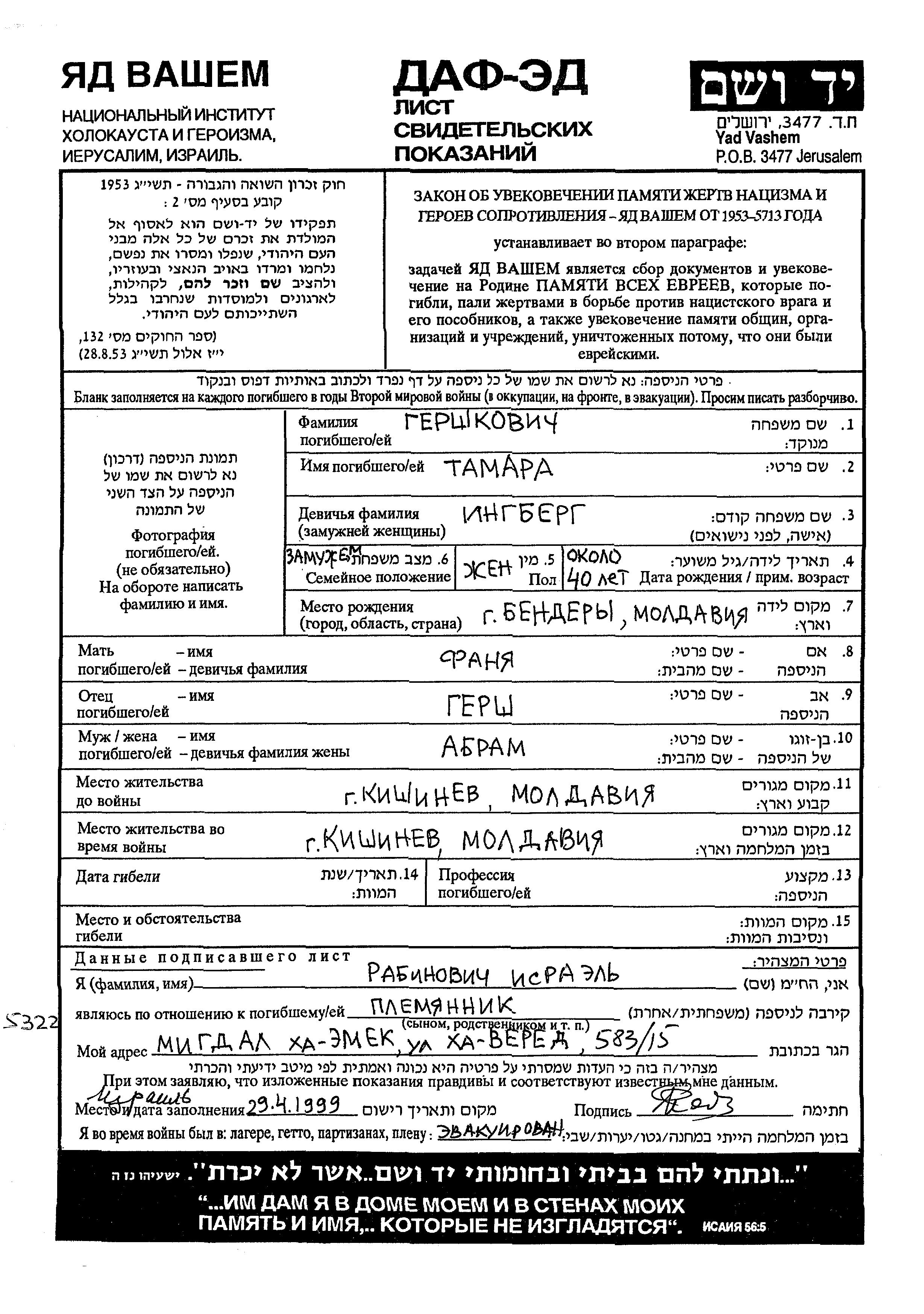 Во время Шоа евреев уничтожали разными способами: газовые камеры, расстрелы, их заживо хоронили или сжигали, непосильным принудительным трудом, голодом, эпидемиями, отсутствием минимальных гигиенических условий и медицинского обслуживания, и т.д. Некоторые евреи добровольно расстались со своей жизнью, чтобы избежать ареста и дальнейших преследований или чтобы покончить с безысходностью и бесконечными страданиями. Десятки тысяч еврейских солдат, служивших в Советской армии и попавших в плен, , были отобраны как евреи и убиты. Многие были зарегистрированы как «пропавшие без вести».